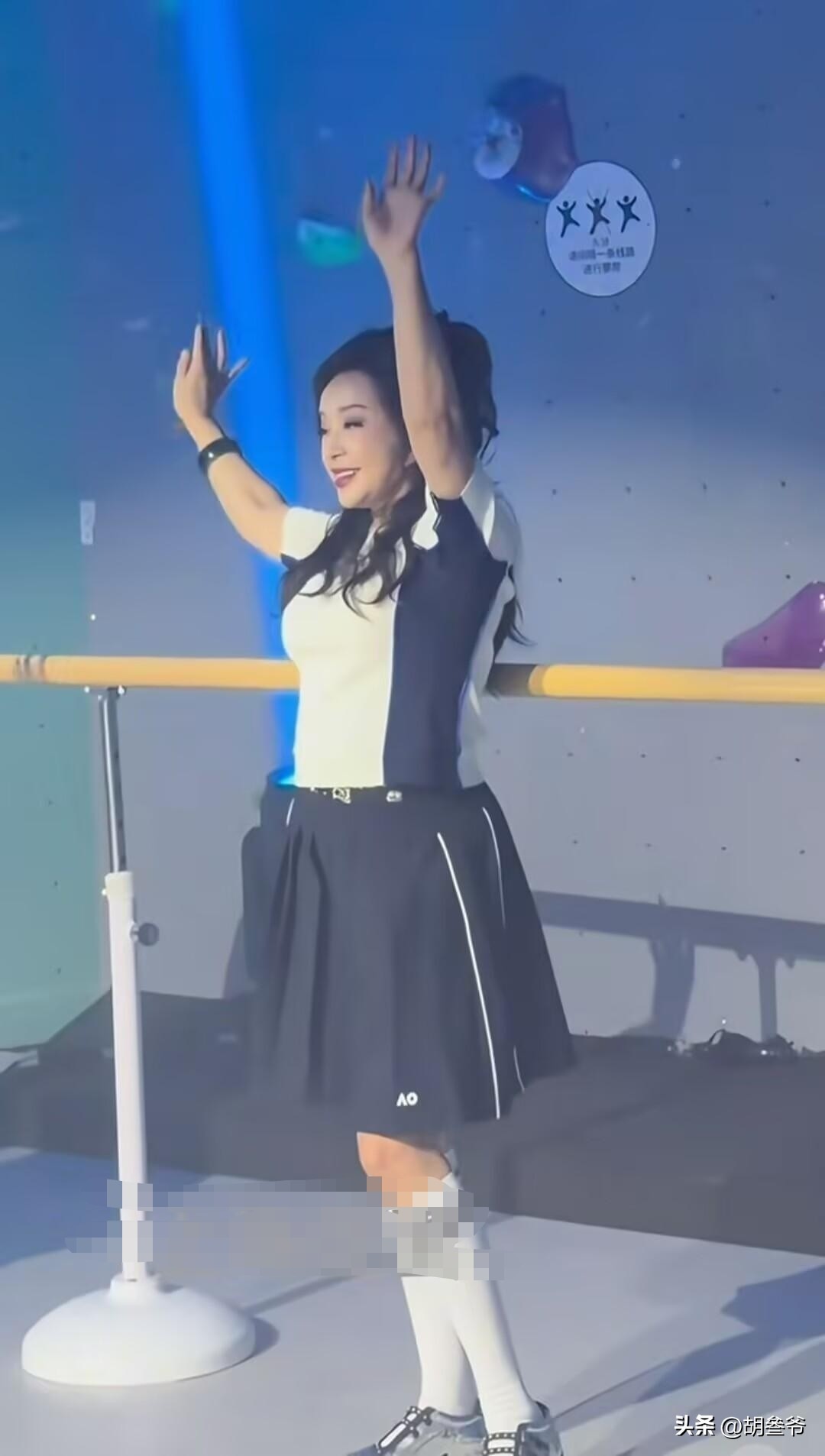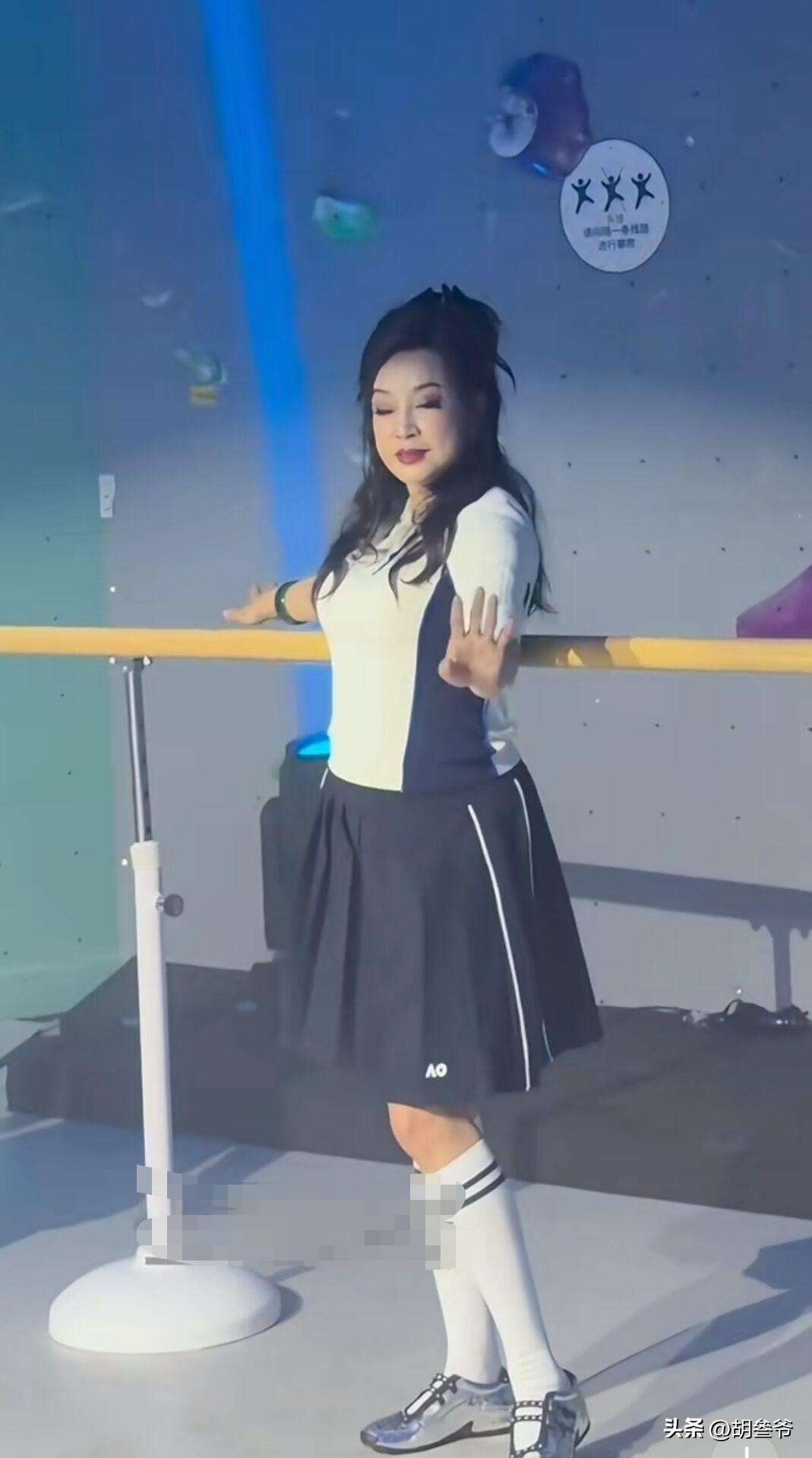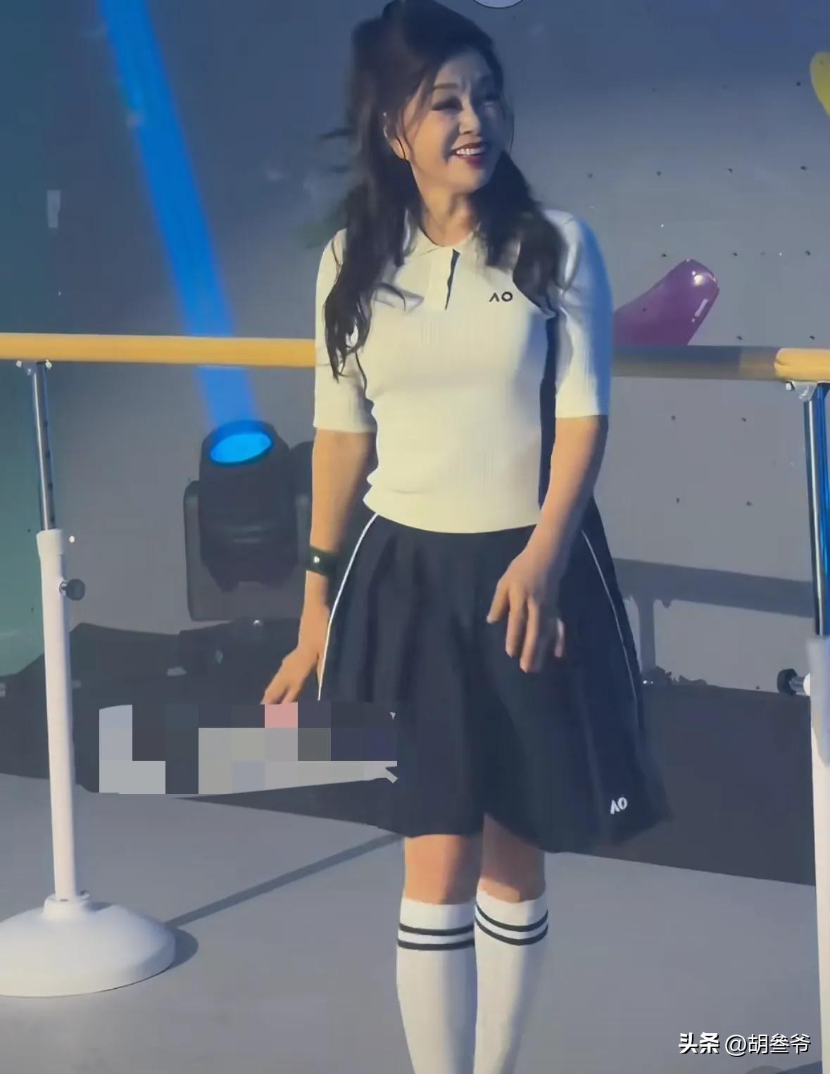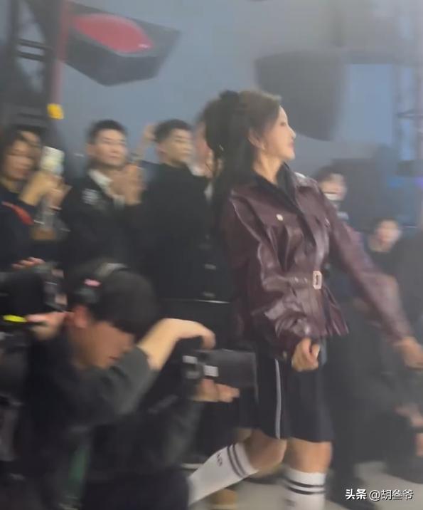 现场她跟着节奏摆姿势、跳热舞,没想到抬手转身时,内层穿搭不小心露了出来。