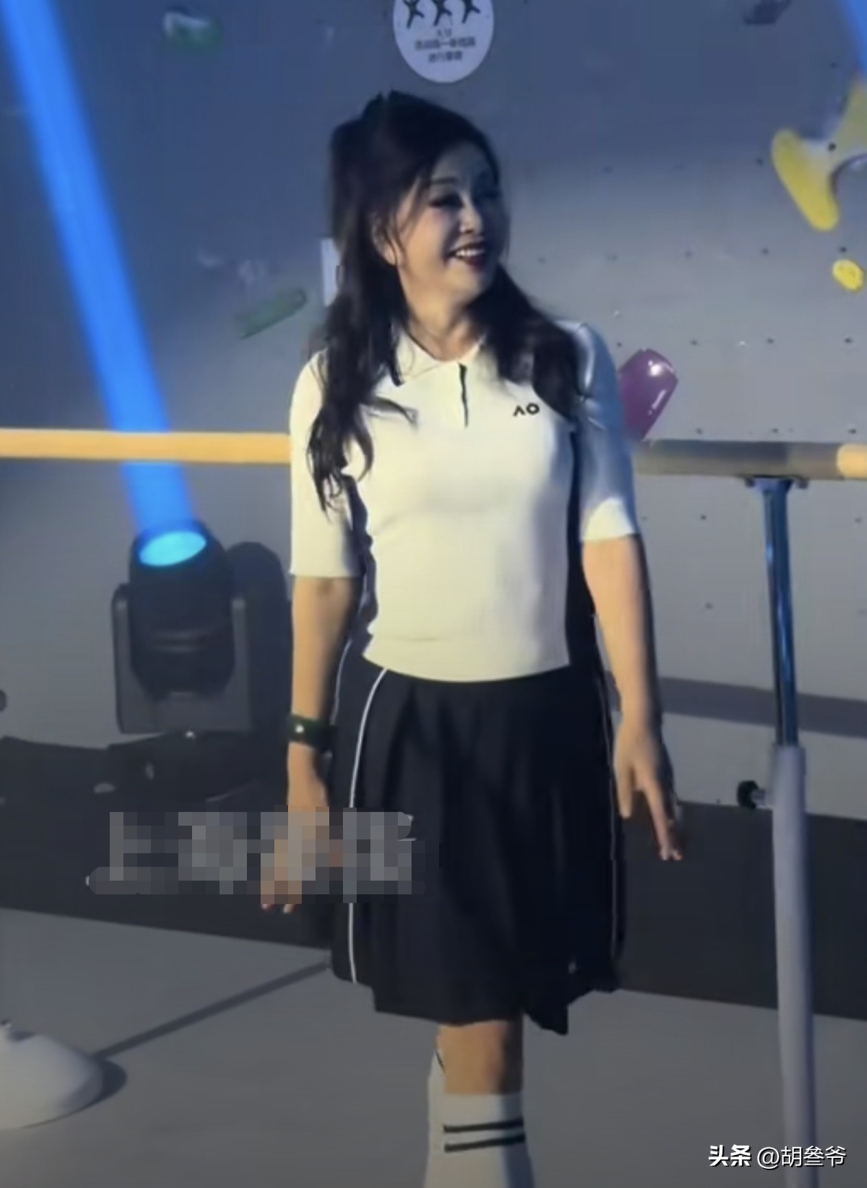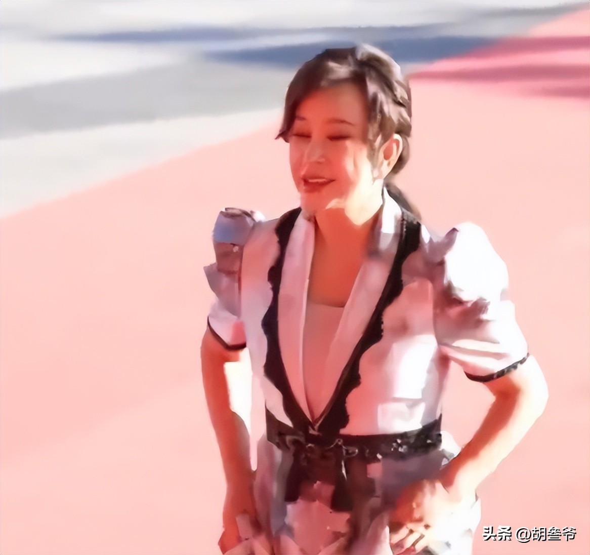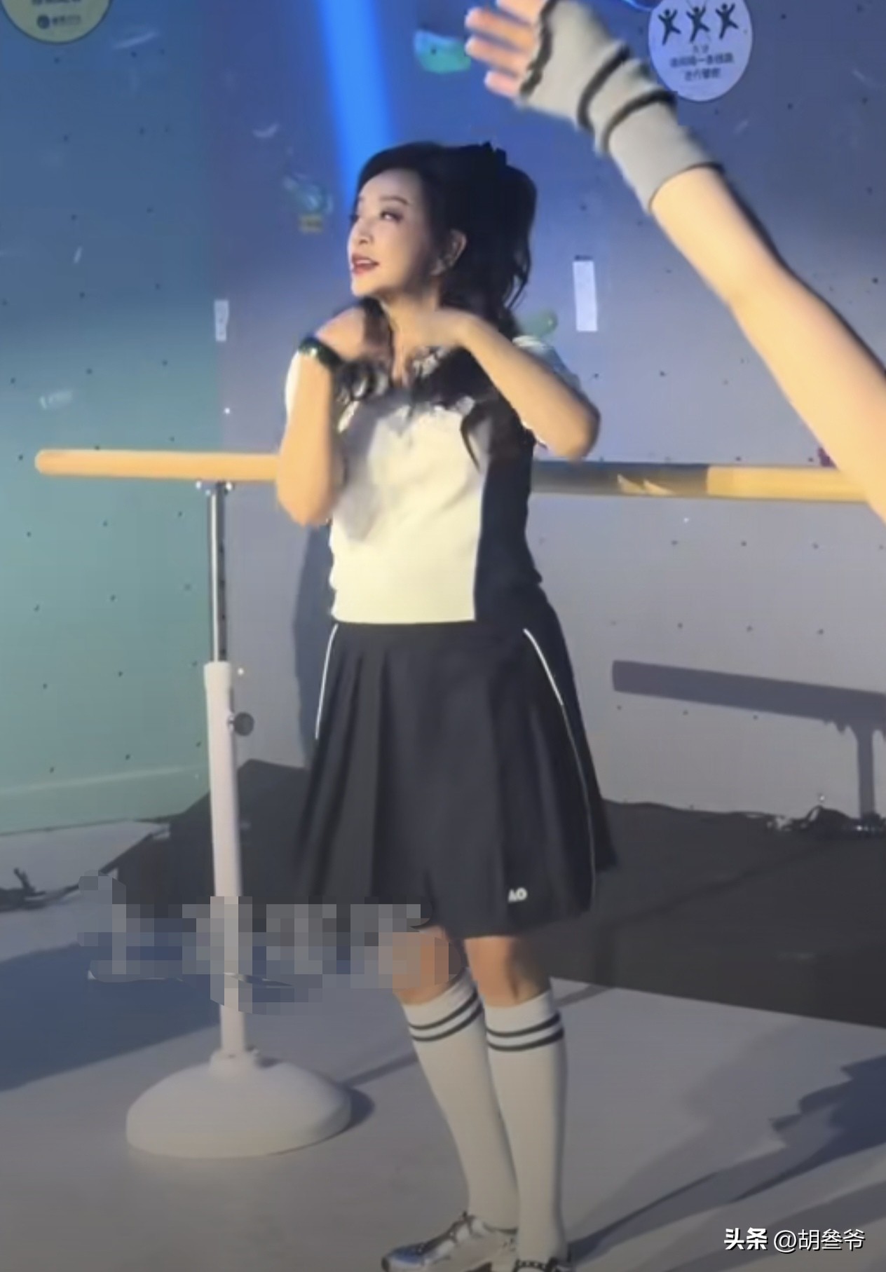 现场她跟着节奏摆姿势、跳热舞,没想到抬手转身时,内层穿搭不小心露了出来。