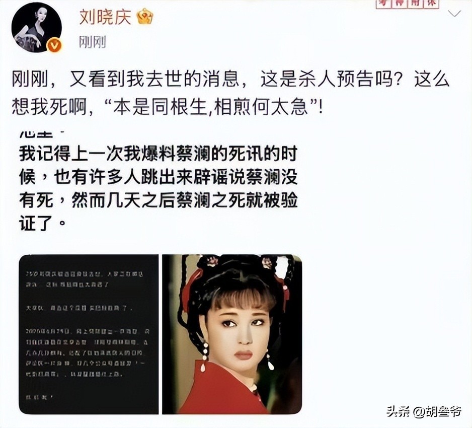 她当天就连发多条动态,直接晒出造谣截图,愤怒质问“这是杀人预告吗”,还引用“本是同根生,相煎何太急”暗指背后关联。